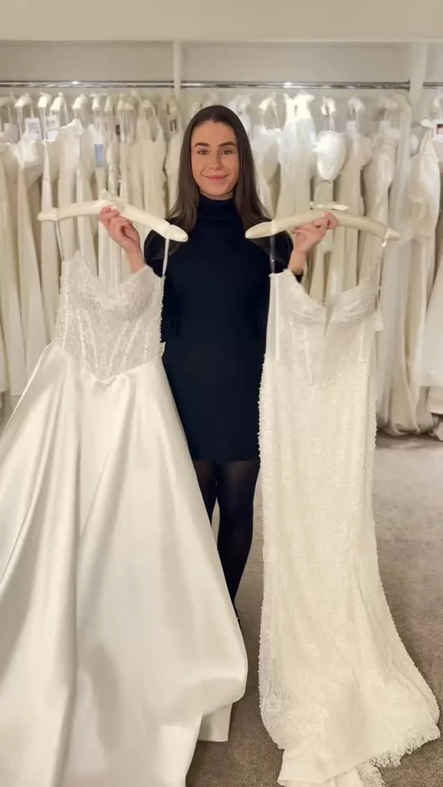 On the day of your appointment your Stylist will have a chat with you, listen to your vision, what you like and don’t like and then invite you to select several gowns from our collection to try, these might be dresses that you have viewed on our website or socials or just love the feel and look of when you visit. While trying on dresses your stylist will ask what you like or do not like about each gown, from this information, once you have tried on your favourite dresses, she will select others for you to try.